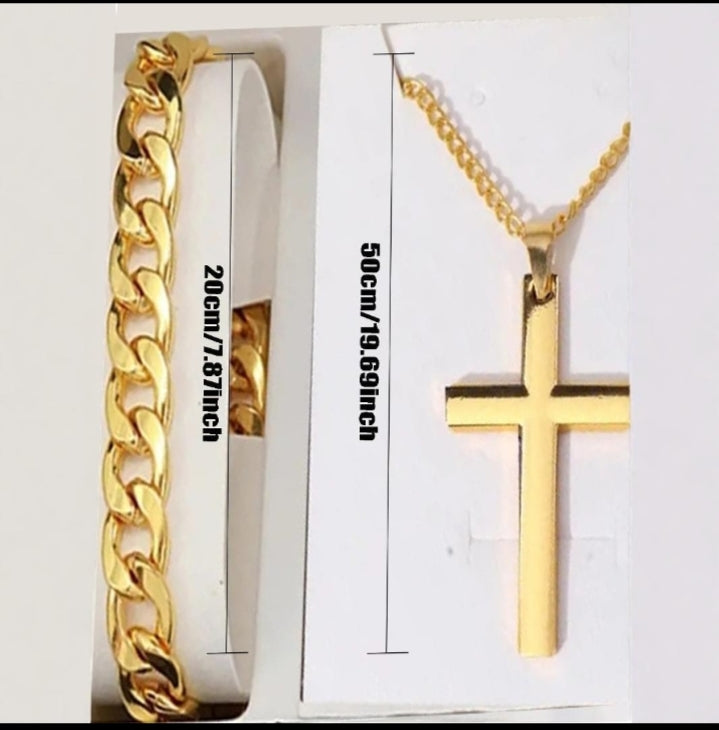Luxury Men's Business Watch Set – Stainless Steel Calendar Watch with Cross Bracelet for Formal & Casual Style